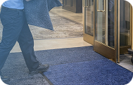Мы устанавливаем специальные влаговпитывающие грязезащитные покрытия перед входными дверями (первая линия защиты), а также в тамбурах и вестибюлях.
